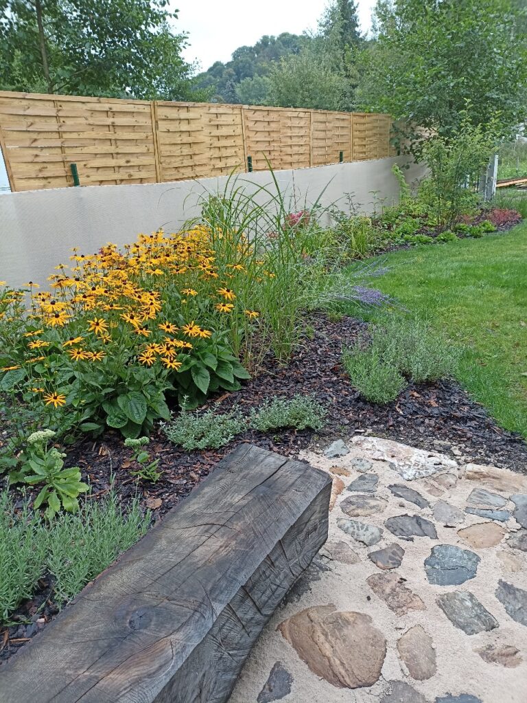 V malebné lokalitě Andělská Hora jsme navrhli zahradu určenou pro rodinnou rekreaci, která spojuje otevřený trávník pro volné hry s útulnými kouty pro odpočinek. Výsadby keřů, stálezelených rostlin a drobných stromů vytvářejí příjemné zázemí, zatímco jemné architektonické prvky a cestní síťka dodávají prostoru strukturální řád. Výsledkem je zahrada, kde dominují relax, pohodlí a kontakt s přírodou, to je ideální pro klidné letní chvíle.