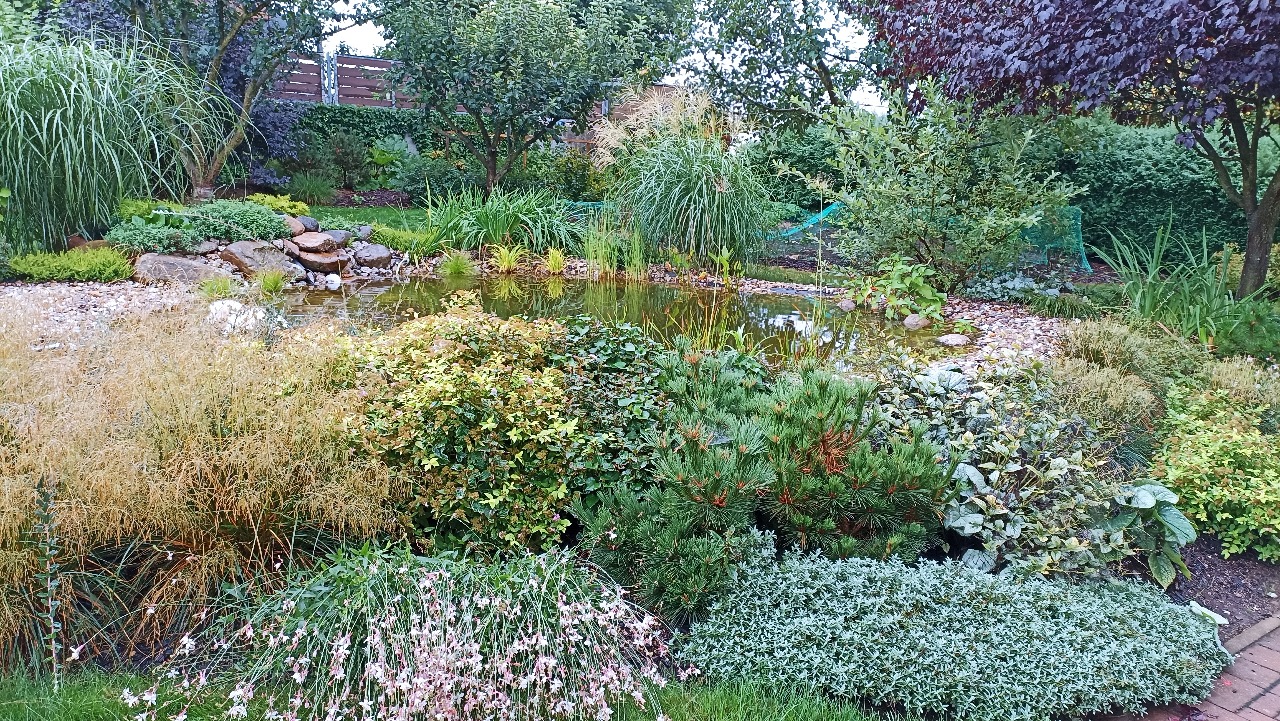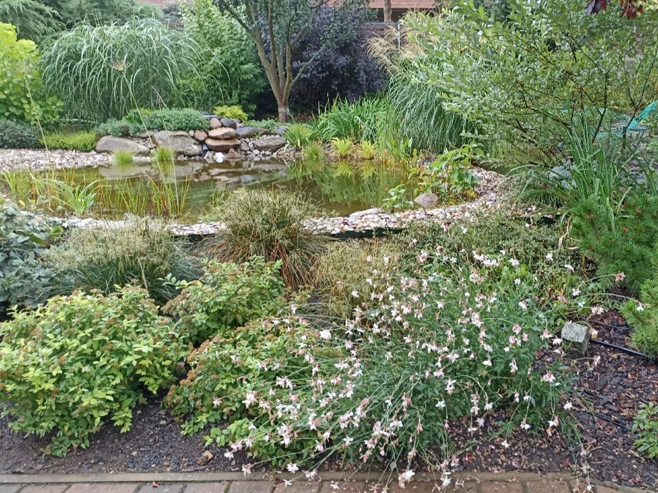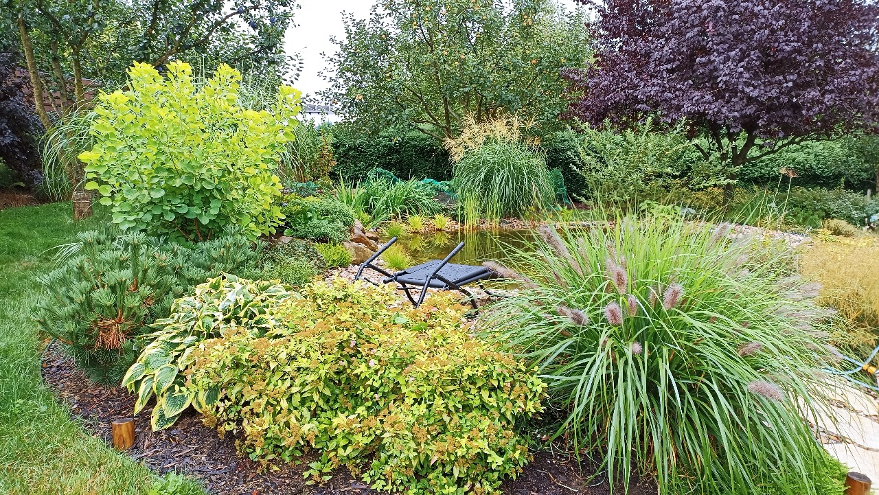 Navrhli a realizovali jsme klidnou zahradu s přirozeně tvarovaným jezírkem v Liberci, která spojuje vodní prvek s bohatou výsadbou travin a keřů. Výsledkem je harmonický kout pro relaxaci v domácím prostředí, kde voda, zelení a kamenné detaily vytvářejí harmonii a navozují pocit pobytu v přírodě.
