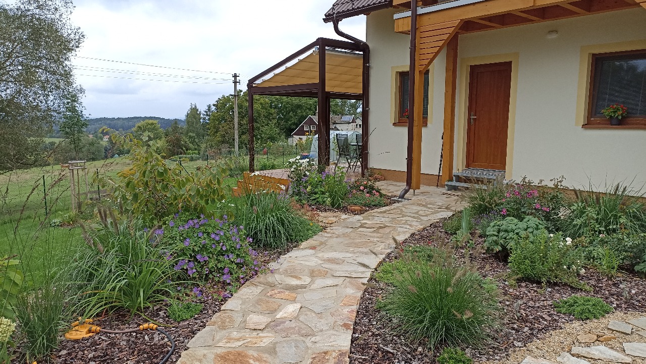 V Bulovce u Frýdlantu jsme proměnili venkovní prostor tak, aby se stal pohodovou a funkční zahradou plnou vizuálních i užitkových prvků. Byly vytvořeny zóny pro relaxaci, výsadba stromů, keřů a trvalek dodává prostoru členitost a perspektivu, a promyšlené detaily jako kamenné prvky a travnaté plochy, které zajišťují harmonii mezi domem a přírodou. Výsledkem je zahrada, která zve k odpočinku a zároveň podporuje spokojený život venku.