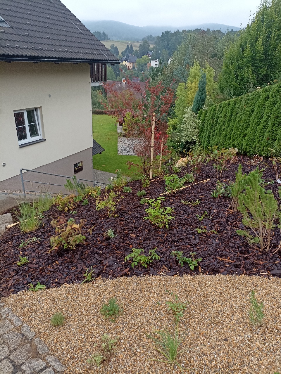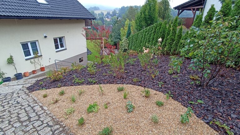 V Liberci jsme proměnili svažitý pozemek v elegantní a dobře využitý venkovní prostor. Díky využití teras, kamenných opěrných zdí a promyšlené výsadbě travin a keřů se terasa domu plynule propojuje s přirozeným sklonem terénu. Výsledkem je zahrada, která nejen nabízí bezpečný a funkční prostor pro relaxaci, ale zároveň zachovává estetiku a přirozený charakter místa.